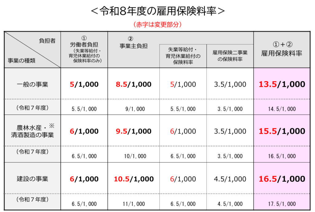 【公式資料】令和8年度 雇用保険料率のご案内(PDF)